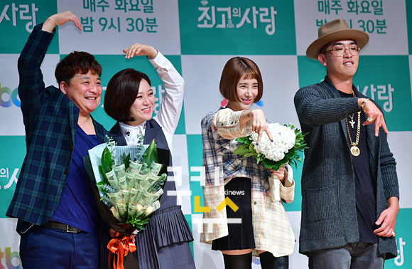 [쿠키뉴스=박효상 기자] 개그맨 윤정수와 김숙, 가수 서인영, 크라운 제이가 8일 오전 서울 상암동 jtbc 사옥에서 열린 예능 프로그램 ‘님과 함께 시즌2-최고(高)의 사랑’ 기자간담회에 참석해 포즈를 취하고 있다.