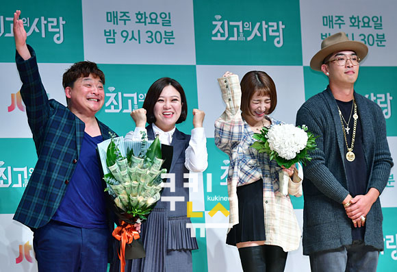 [쿠키뉴스=박효상 기자] 개그맨 윤정수와 김숙, 가수 서인영, 크라운 제이가 8일 오전 서울 상암동 jtbc 사옥에서 열린 예능 프로그램 ‘님과 함께 시즌2-최고(高)의 사랑’ 기자간담회에 참석해 포즈를 취하고 있다.