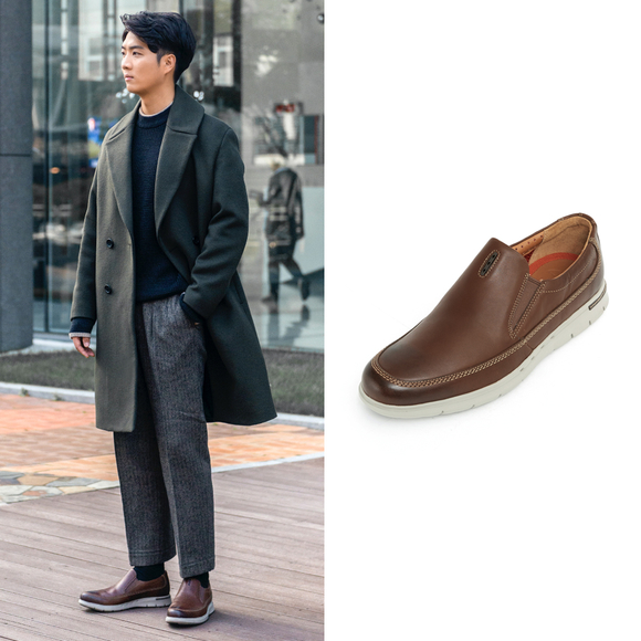 다만 자칫 무거워질 수 있는 옷의 무게를 덜기 위해 신발은 편안하면서도 세련된 분위기를 동시에 낼 수 있는 브라운 컬러의 슬립온 캐주얼 슈즈를 매칭하면 따뜻하면서도 편안한 분위기의 가을 남자로 거듭날 수 있다.