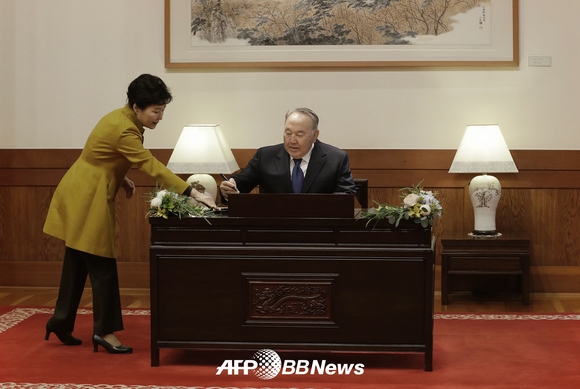카자흐스탄 누르술탄 대통령 돕는 朴 대통령