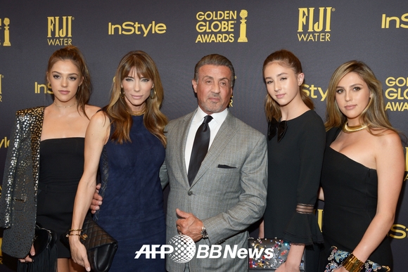 [쿠키뉴스=이은지 기자] 10일(현지시간) 미국 캘리포니아주 웨스트할리우드에서 열린 ‘2017 미스 골든 글로브(2017 Miss Golden Globes)’ 시상식에서 영화배우 실베스터 스탤론과 그의 아내, 딸 시스틴,스칼렛, 소피아가 포즈를 취하고 있다.