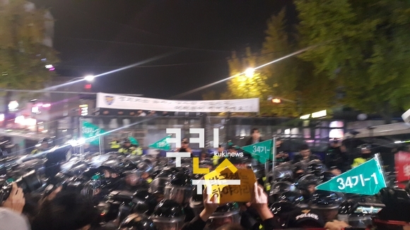 [쿠키뉴스=민수미, 정진용, 이소연, 심유철, 이승희 기자] 시위대와 경찰이 2시간 넘게 대치 중이다.