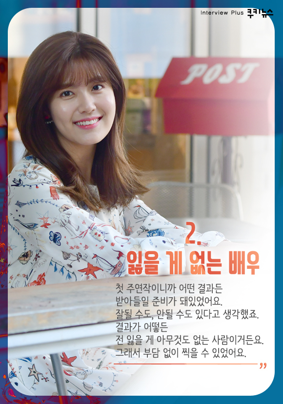 “첫 주연작이니까 어떤 결과든 받아들일 준비가 돼있었어요. 잘될 수도, 안될 수도 있다고 생각했죠. 결과가 어떻든 전 잃을 게 아무것도 없는 사람이거든요. 그래서 부담 없이 찍을 수 있었어요”