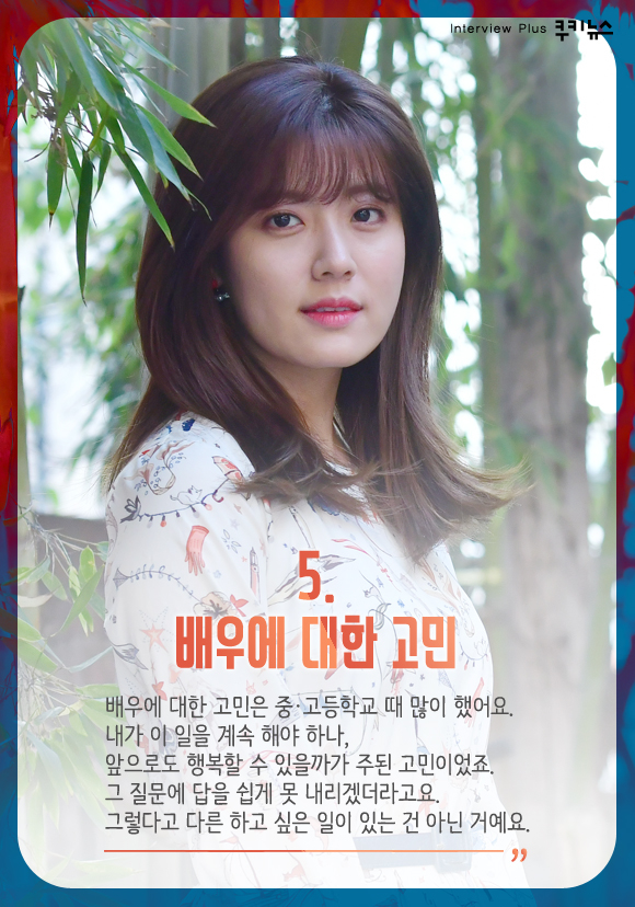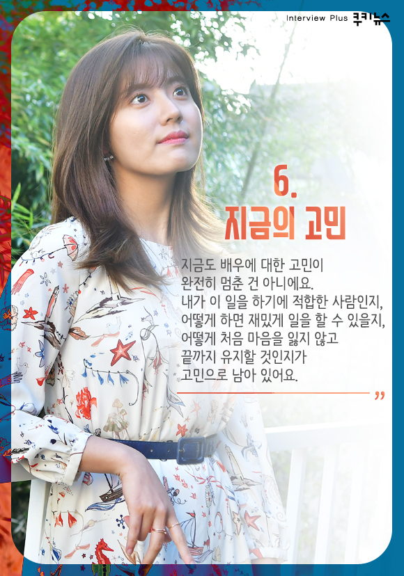 “지금도 배우에 대한 고민이 완전히 멈춘 건 아니에요. 내가 이 일을 하기에 적합한 사람인지, 어떻게 하면 재밌게 일을 할 수 있을지, 어떻게 처음 마음을 잃지 않고 끝까지 유지할 것인지가 고민으로 남아 있어요.”
