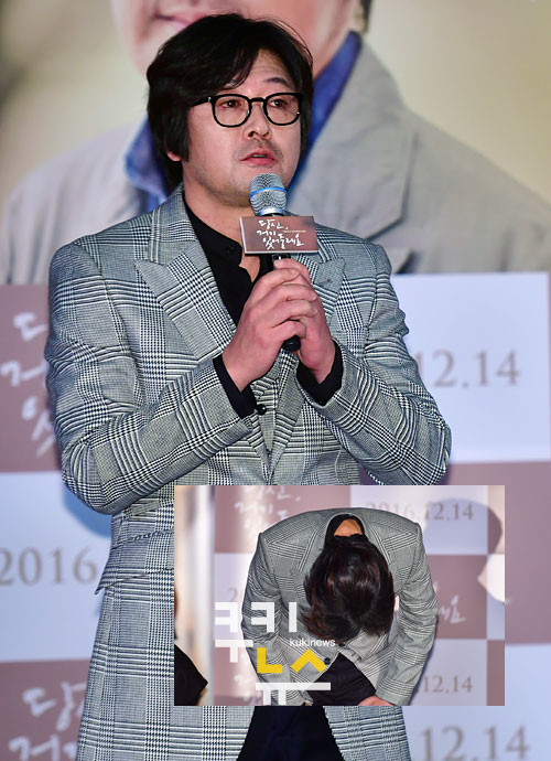 5일 오후 서울 CGV 왕십리점에서 열린 영화 ‘당신, 거기 있어줄래요’(감독 홍지영) 언론시사회 후 기자간담회에서 김윤석은 간담회 전 “제가 여러분에게 사과를 먼저 드리는 게 예의일 것 같다”며 일어섰다.