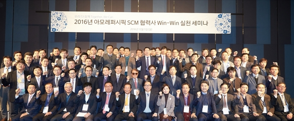 [쿠키뉴스=구현화 기자]㈜아모레퍼시픽은 5일 라마다 프라자 수원 호텔에서 ‘제7회 SCM(Supply Chain Management) 협력사 윈윈(WIN-WIN) 실천 세미나’를 개최했다. 본 행사는 ㈜아모레퍼시픽과 SCM 협력사간 긴밀한 소통을 통한 동반성장을 실현하고, 장기적으로 건전한 SCM 생태계를 조성하기 위해 매년 진행되고 있다.