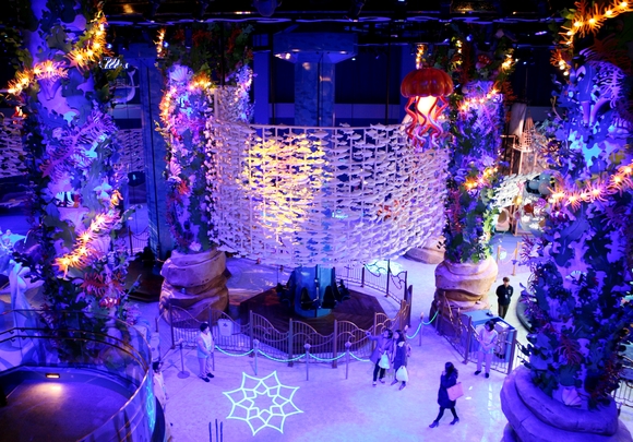 아래부터 본격적인 쇼핑몰이 펼쳐지므로 아이들을 위한 공간도 신경 썼다. 22일 개장을 앞둔 롯데월드 키즈파크가 3~4층에 조성돼 있다. '바닷속 세상'을 연상케 하는 파도와 해초들로 장식돼 놀이기구도 이용할 수 있는 이곳은 아이들이 마음껏 놀 수 있는 세상이다. 롯데월드 느낌의 신나는 음악이 흘러나왔다. 다만 가격은 어린이 1인에 2만5000원, 성인은 1만5000원으로 다소 비싼 편이었다.