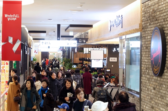 몰이 시작되는 4층부터 제대로 둘러보니 우선적으로 식품관이 눈에 들어왔다. 영업면적 기준 5100㎡(1540평) 규모로 식음 구성을 20% 두는 등 단일 규모로는 서울시내 최대규모의 식당가다. 세계 유명 수산시장을 벤치마킹한 '바이킹스마켓 해도식당' 등 해산물 요리를 강조했다. 홍대의 유명 음식점을 옮겨 놓은 '홍스트리트'도 인상적이었다. 은근 쇼핑몰이 없는 만큼 '먹으러 오는' 손님들을 겨냥한 것으로 보인다.