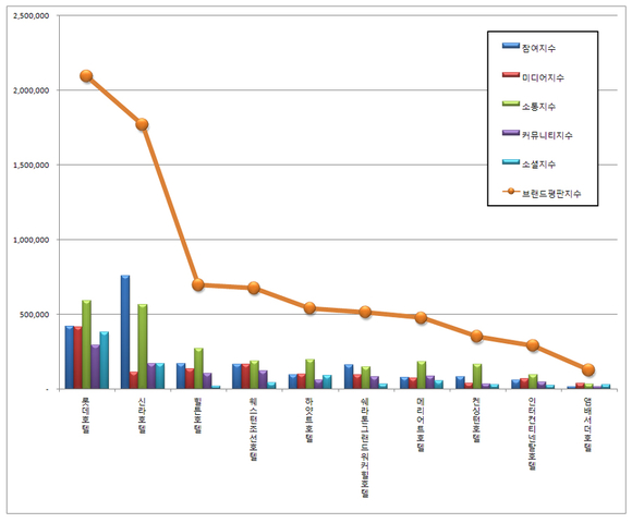 1위 롯데호텔은 참여지수 42만200 미디어지수 41만4414 소통지수 58만8357 커뮤니티지수 29만136 소셜지수 38만407가 되면서 브랜드평판지수 209만3514로 분석되었다. 지난 11월 브랜드평판지수 183만1510와 비교해보면 14.31% 상승했다.
