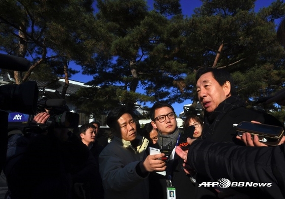 [쿠키뉴스=구현화 기자] 최순실 게이트' 국정조사 특위 김성태 위원장이 16일 오후 청와대 춘추관 앞에서 기자회견을 하고 있다. 이날 국조특위 위원들은 청와대의 거부로 청와대 진입을 못한 채 발길을 돌려야 했다.