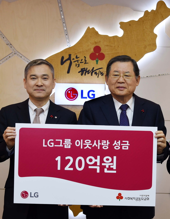 [쿠키뉴스=구현화 기자] LG가 연말을 맞아 19일 오후 이웃사랑 성금 120억 원을 사회복지공동모금회에 기탁한다.
