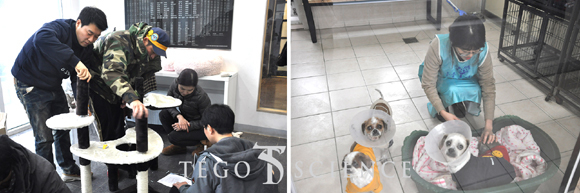 반려동물복지센터를 찾은 테고사이언스 임직원은 동물들의 보금자리 청소 및 먹이 주기 등 다양한 활동을 통해 동물들과 교감을 나눴다. 이와 함께 테고사이언스 측은 반려동물센터 유기 동물들을 위해 캣타워, 배변패드 등도 함께 기부했다.