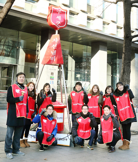 이날 회사 전 직원 54명은 구세군 봉사자를 상징하는 빨간 조끼를 입고 어려운 이웃을 돕기 위해 서울 다섯개 중심 지역에서 2시간씩 모금 활동을 펼쳤다.