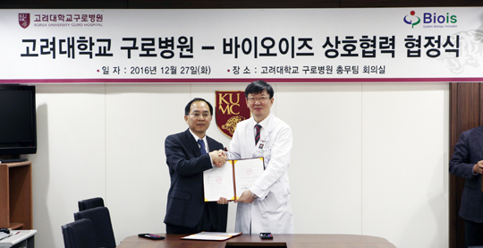 은백린 원장은 “고대구로병원은 2009년 국내 최초로 ‘의료기기 임상시험센터’를 설립해 의료기기 임상시험을 국내에서 가장 많이 수행하는 노하우를 축적해 왔다. 지난해 보건복지부로부터 ‘의료기기 중개임상시험지원센터’ 사업에 선정돼 의료기기 기업의 시장진출을 돕는 등 오랜 기간 의료기기 산업 발전을 이끌어 왔다”며 “바이오이즈와의 협약을 바탕으로 의료기기 산업을 한 차원 높은 단계로 끌어올릴 수 있도록 적극 협력하겠다”고 말했다.