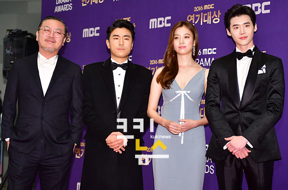 [쿠키뉴스=박효상 기자] 배우 김의성과 이시언, 한효주, 이종석이 30일 오후 서울 마포구 상암동 MBC 신사옥에서 열린 ‘2016 MBC 연기대상’에 참석해 포토타임을 갖고 있다. tina@kukinews.com