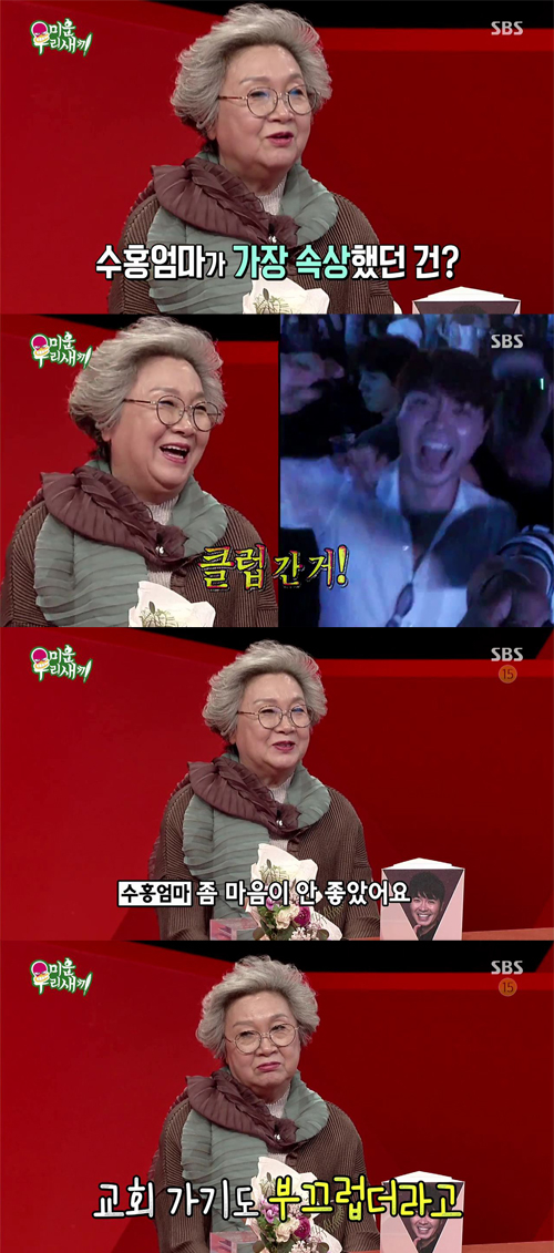 30일 저녁 방송된 SBS '미운 우리 새끼'에서 박수홍의 모친은 "어떤 아들의 모습이 가장 속상했냐?"는 한혜진의 물음에 "클럽 간 거. 엄마가 아들이 클럽에 가는데도 몰랐으니"라고 답했다.
