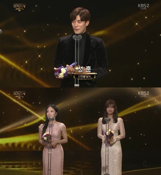 31일 오후 서울 여의도 KBS홀에서 진행된 '2016 KBS 연기대상'에서 '아이가 다섯' 성훈과 '구르미 그린 달빛'의 진영은 남자 신인상을 수상했다. 김지원과 이세영은 각각 '태양의 후예'와 '월계수 양복점 신사들'로 신인상을 수상했다.
