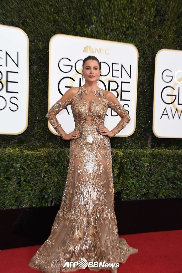 [쿠키뉴스=박효상 기자] 배우 소피아 베르가라가 8일(현지시간) 미국 캘리포니아 주 비버리힐즈의 비버리 힐튼 호텔에서 열린 제74회 골든 글로브 시상식에 참석해 포즈를 취하고 있다. ⓒAFP BBNews=News1 tina@kukinews.com