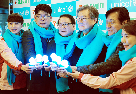 이날 진행된 선포식에는 정승인 세븐일레븐 대표와 유니세프한국위원회 친선대사인 배우 안성기씨, 그리고 서대원 유니세프한국위원회 사무총장, 계상혁 세븐일레븐 상생협의회장 등이 참석했다.
