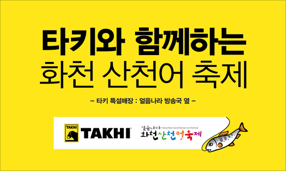 타키 관계자는 “국내 최고의 겨울 축제인 화천 산천어 축제에 타키가 올해도 함께 하게 돼 매우 기쁘게 생각한다.” 며, “겨울의 즐거움을 만끽할 수 있는 이번 축제에 많은 분들이 함께하길 바란다.”고 말했다.