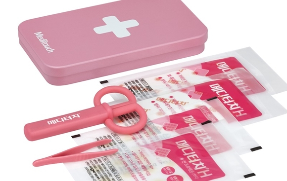 메디터치 올인원은 감성적인 디자인의 틴케이스에 하이드로콜로이드드레싱인 ‘메디터치H 썬 프로텍션’ 시트형 및 도트형 제품을 비롯해 핀셋, 가위 등의 부속 도구를 담은 키트 형태로 제작됐다.