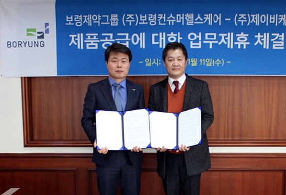 자연치유정신 실현을 추구하는 바이오헬스케어 기업 제이비케이랩은 지난 11일 보령제약 본사에서 보령컨슈머헬스케어와 ‘제품 공급에 관한 업무제휴 체결식’을 가졌다고 밝혔다.