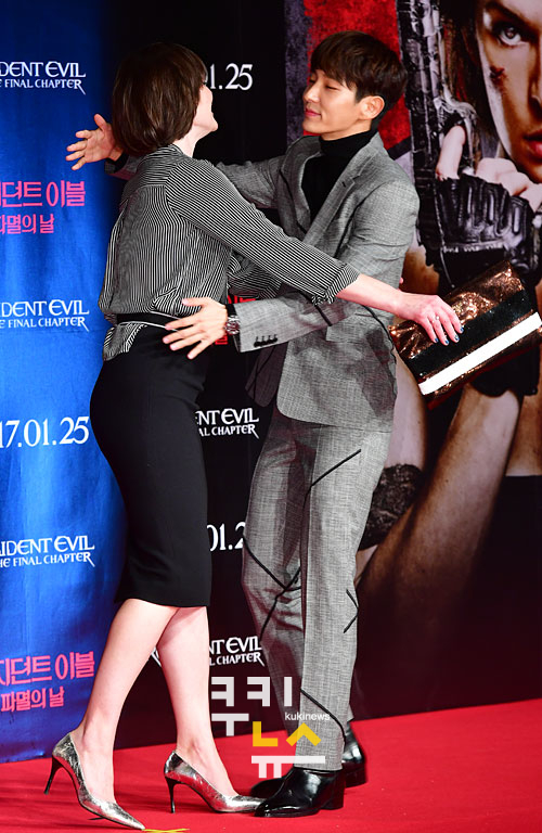 [쿠키뉴스=박효상 기자] 할리우드 배우 밀라 요보비치와 이준기가 13일 오전 서울 광화문 포시즌스호텔에서 열린 ‘레지던트 이블: 파멸의 날'(폴 앤더슨) 내한 기자회견에서 포즈를 취하고 있다.