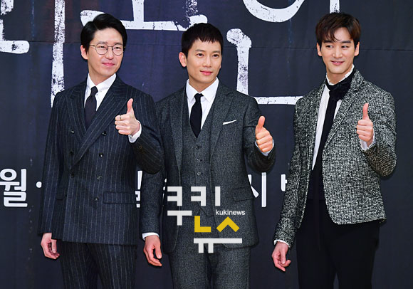 [쿠키뉴스=박효상 기자] 배우 엄기준, 지성, 오창석이 19일 오후 서울 목동서로 SBS 사옥에서 열린 ‘피고인’ 제작발표회에 참석해 포즈를 취하고 있다.