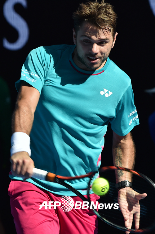 [쿠키뉴스=박효상 기자] 세계랭킹 4위 스탄 바브린카(32, 스위스)가 24일(한국시간) 호주 멜버른 로드레이버아레나에서 열린 '2017년 호주 오픈 테니스 대회 남자 단식' 8강전에서 세계랭킹 12위 조 윌프레드 송가(32, 프랑스)를 세트 스코어 3-0(7-6<2> 6-4 6-3)으로 이기고 4강에 진출했다.ⓒAFP BBNews=News