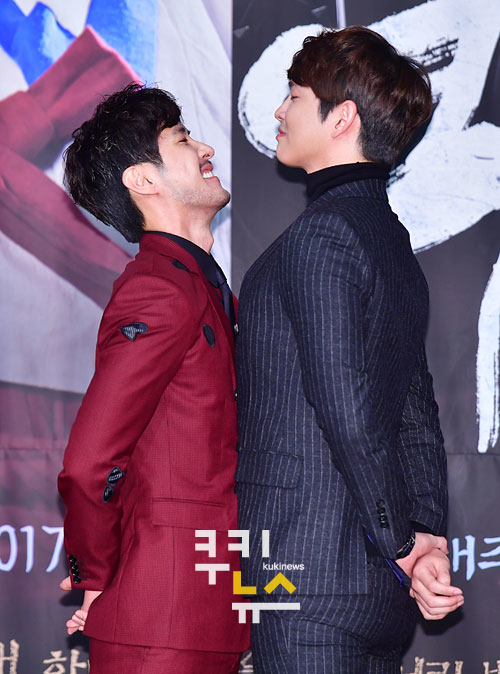 [쿠키뉴스=박효상 기자] 배우 김지석과 윤균상이 25일 오후 서울 마포구 상암동 MBC 사옥에서 열린 MBC 드라마 '역적: 백성을 훔친 도적' 제작발표회에 참석해 포즈를 취하고 있다.