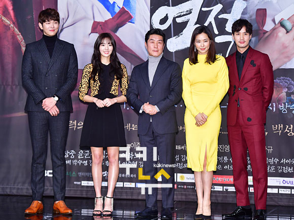 [쿠키뉴스=박효상 기자] 배우 윤균상, 채수빈, 김상중, 이하늬, 김지석(왼쪽부터)이 25일 오후 서울 마포구 상암동 MBC 사옥에서 열린 MBC 드라마 '역적: 백성을 훔친 도적' 제작발표회에 참석해 포즈를 취하고 있다.