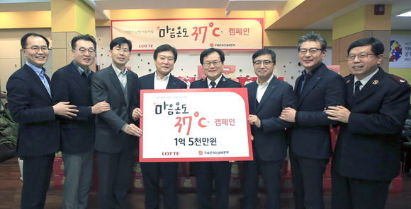 [쿠키뉴스=구현화 기자] 롯데는 25일 서울 서대문구 천연동에 위치한 구세군 서울후생원에서 ‘마음온도 37도 캠페인’에 1억 5000만 원을 기부했다. 기부금과 함께 어린이들이 따뜻한 명절을 보낼 수 있도록 목도리와 과자세트 등의 선물도 함께 전달했다.