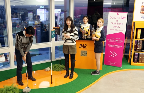 뿐만 아니라 세계 최고 권위 골프대회인 디오픈챔피언십(브리티시 오픈)의 후원사이기도 한 두산과 글렌모렌지는 두타 바(Bar)를 골프존 컨셉으로 구성해 동대문이 한 눈에 내려다 보이는 장소에서 골프 퍼팅을 체험해 볼 수 있도록 했다.