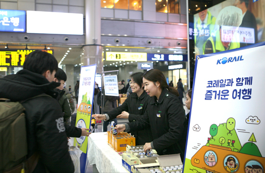 설 명절 코레일 이용 귀성객을 대상으로 한 이번 행사는 서울역과 용산역에서 진행됐다. 행사를 통해 귀성객들에게 따뜻한 떡과 곶감, 복조리 등과 함께 부채표 소화제 까스활과 비타천플러스 등이 제공됐다.