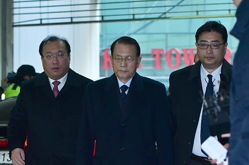 [쿠키뉴스=구현화 기자] 김기춘(78·사진 가운데) 전 대통령 비서실장이 자신에게 적용된 문화예술계 '블랙리스트' 혐의가 특검법상 수사대상이 아니라며 문제를 제기했다. 이에 특검은 블랙리스트 의혹이 특검법상 명백히 수사대상이라고 반박했다.