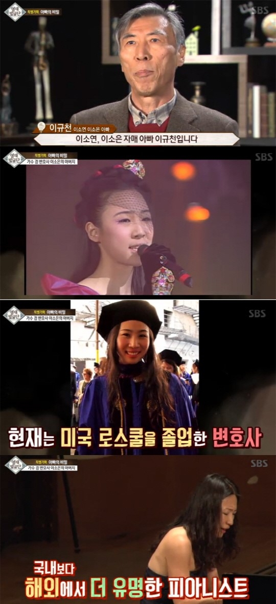 국제변호사 이소은의 언니는 유명한 피아니스트 이소연씨. 두 사람을 훌륭하게 키워낸 것은 다름아닌 아버지 이규천 씨라고. 이소은은 "아빠가 제일 많이 하시는 말씀은 'Forget about it'이다"라며 "지나간 것은 생각할 필요 없이 잊고 앞을 보고 향해 나가라는 것"이라고 밝혔다.