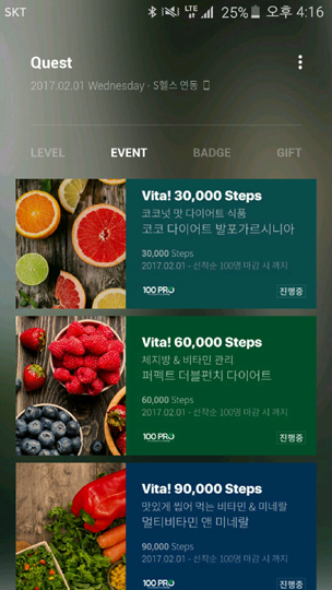 3만보 달성자는 코코넛맛 다이어트식품인 ‘코코 다이어트 발포가르시니아’, 6만보 달성자는 체지방과 비타민을 동시에 관리할 수 있는 ‘퍼펙트 더블펀치 다이어트’, 9만보 달성자는 씹어 먹는 가족용 멀티비타민 ‘비타푸드 츄어블 패밀리 멀티비타민’을 받을 수 있으며, 상품별로 선착순 1백명씩, 총 3백명에게 무료 증정의 혜택이 제공된다.