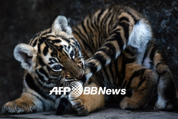 [쿠키뉴스=박효상 기자] 지난달 31일(현지시간) 엘살바도르 자야크에 있는 야생동물보호소 퓨레사(FURESA)에서 태어난 지 45일된 새끼 벵갈호랑이가 보살핌을 받고 있다. AFP는 멸종 위기종인 벵갈호랑이 4마리가 이 보호소에서 태어났다고 전했다. ⓒAFP BBNews=News