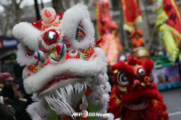 [쿠키뉴스=이은지 기자] 지난달 29일 영국 런던 센트럴에서 중국인들이 중국 설을 맞아 퍼포먼스를 벌이고 있다.