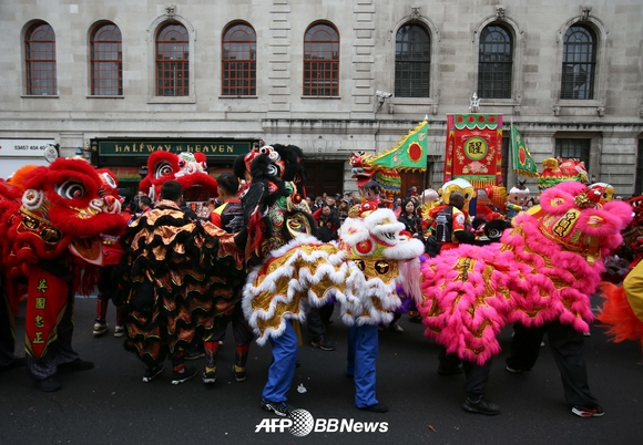 [쿠키뉴스=이은지 기자] 지난달 29일 영국 런던 센트럴에서 중국인들이 중국 설을 맞아 퍼포먼스를 벌이고 있다.