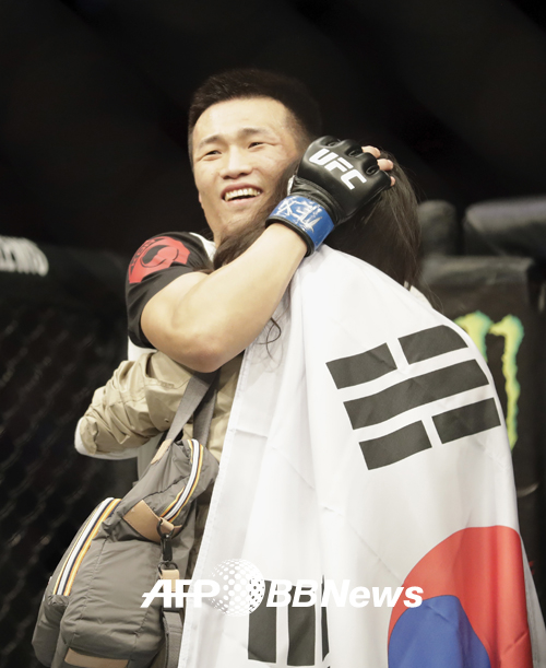 지난 2010년 UFC에 데뷔한 정찬성은 이로써 UFC전적 4승 1패를 기록하게 됐다. 1패는 지난 2013년 8월4일 정찬성이 UFC를 잠시 떠나게 했던 조제 알도(현 페더급 챔피언)와 경기에서 패배한 것이다. 당시 정찬성은 조제 알도와의 경기에서 어깨 탈구로 패비를 안았고, 부상 재활과 2014년 10월부터 군복무 등으로 UFC를 잠시 떠났었다.ⓒAFP BBNews=News1