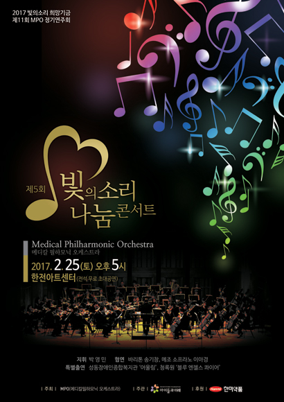 MPO가 주최하고 한미약품이 후원하는 빛의소리 나눔콘서트는 소외계층 예술교육 기금 조성을 위한 자선 음악회다.