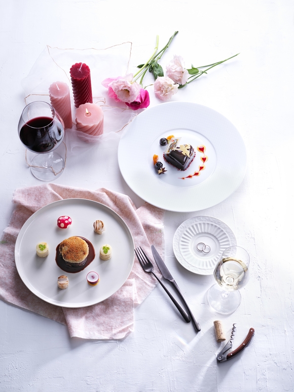 파크 하얏트 부산의 모던 프렌치 레스토랑 리빙룸은 발렌타인 기념 5코스 디너와 더불어 아름다운 장미꽃 한 송이와 달콤한 초콜릿 박스를 준비했다. 리빙룸의 발렌타인 세트는 1인 12만 원에 이용 가능하다. 프리미엄 그릴 & 스시 레스토랑 다이닝룸의 로맨틱한 프로포즈 패키지는 5코스 특선 메뉴와 더불어 스파클링 로제 와인 한 병과 파크 하얏트 부산의 플로어리스트가 손수 제작한 장미 부케를 제공한다. 프로포즈 패키지는 2인 35만 원.