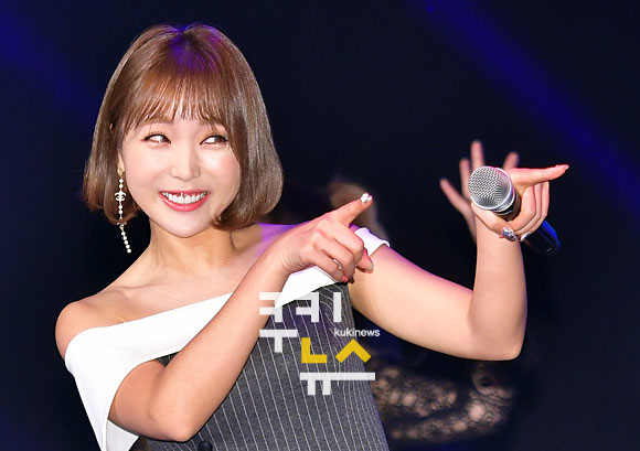 [쿠키뉴스=박효상 기자] 가수 홍진영이 9일 오후 서울 합정동 메세나폴리스 신한카드 판스퀘어 라이브홀에서 열린 컴백 '사랑 한다 안한다' 쇼케이스에서 멋진 무대를 선보이고 있다.