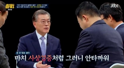 지난 9일 오후 방송된 JTBC '썰전'에는 19대 대선 후보 문 전 대표가 출연해 자신의 정책 등에 관련해 이야기를 나눴다.
