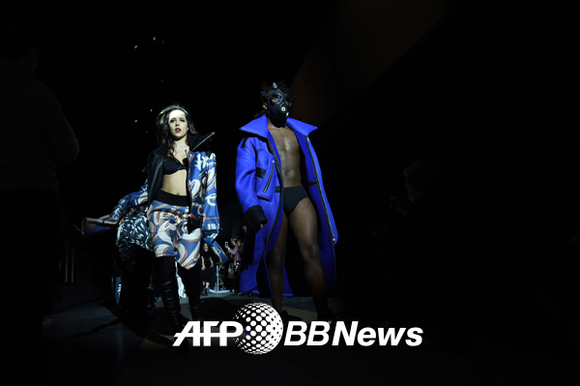 [쿠키뉴스=이은지 기자] 지난 13일(현지시간) 뉴욕 패션위크 기간 중 미국 뉴욕의 시 에어 스페이스 박물관에서 열린 치 장 패션쇼에 선 모델이 포즈를 취하고 있다.