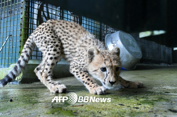 [쿠키뉴스=박효상 기자] 15일(현지시각) 싱가포르 야생동물 보호 공원(WRS)에서 새끼 치타가 먹이를 보고 있다.