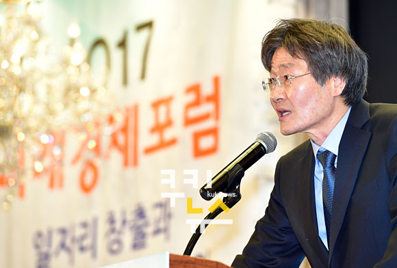 [쿠키뉴스=박효상 기자] 변재운 쿠키뉴스 대표이사 몇 미래경제포럼 이사장이 20일 오후 서울 여의도 국민일보 컨벤션홀에서 열린 '2017 미래경제포럼: 일자리 창출과 서민경제 활성화 방안'에서 개회사를 하고 있다.