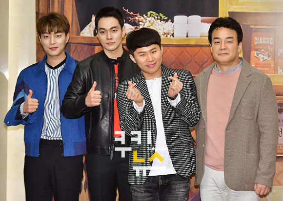 [쿠키뉴스=박효상 기자] 가수 윤두준, 배우 이규한, 개그맨 양세형, 요리연구가 백종원이 21일 오후 서울 월드컵북로 상암 스탠포드호텔에서 열린 tvN ‘집밥 백선생3’ 제작발표회에서 포즈를 취하고 있다.
