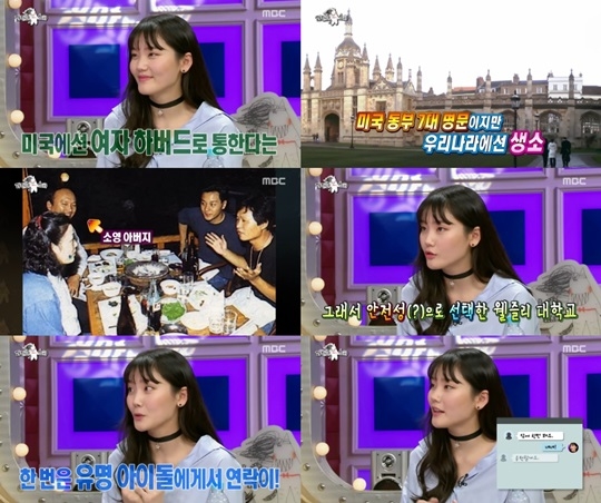 지난 22일 오후 방송된 MBC '황금어장-라디오스타'(이하 '라디오스타')에는 미국 웰즐리 대학을 졸업한 모델 심소영이 시선을 모았다. 힐러리 클린턴과 미국 최초 여성 국무장관인 매들린 올브라이트의 모교이기도 한 웰즐리 대학은 '여자 하버드'로 불리는 명문 중의 명문 대학교.